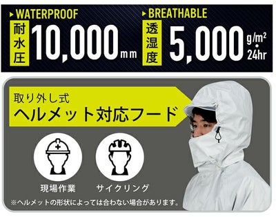 | 【特徴】 | 透湿素材とダブルベンチレーションでムレを逃がす ◆耐水圧10,000mm ◆透湿度5,000g/m2・24hr ◆取り外し式ヘルメット対応フード※ヘルメットの形状によっては合わない場合があります ◆ダブルベンチレーション ベンチレーションを二か所搭載 ◆安全性を高める脇ポケットの反射糸 ◆ジャケット裾幅ドローコードで調節可能 ◆裏メッシュ仕様 べたつきを抑える総メッシュ ◆パンツ裾幅ボタンで調節可能 |