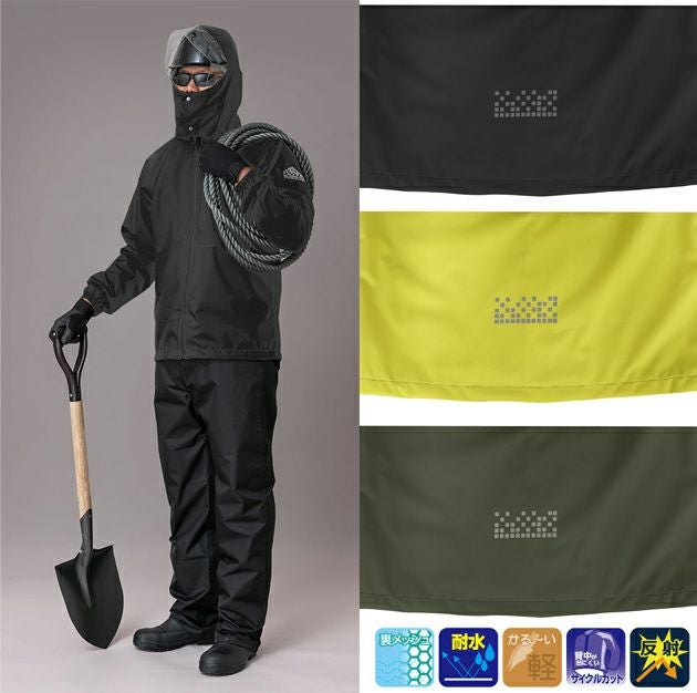 【特徴】 快適な機能を搭載全天候型レインウェア