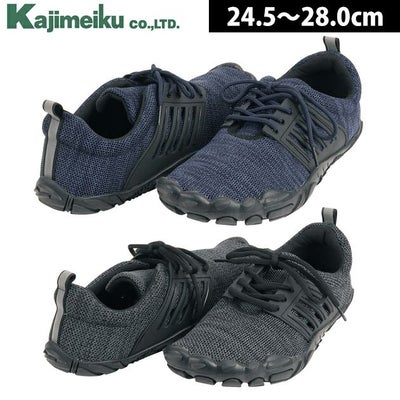 幅広で指先を締め付けない五本指風。ニット素材で通気性抜群 カジメイク 6411 安全靴 GILIO ベアフットシューズ