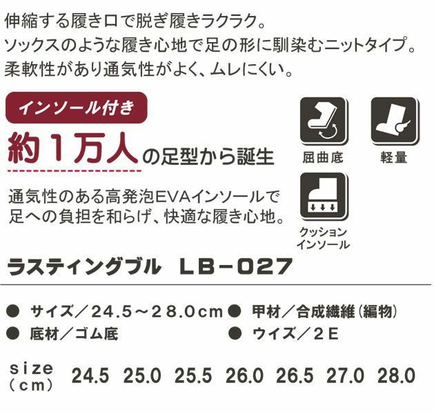 裸足感覚で履けるストレスフリーな1足!伸縮性がすごい! 福山ゴム 作業靴 ラスティングブル LB-027