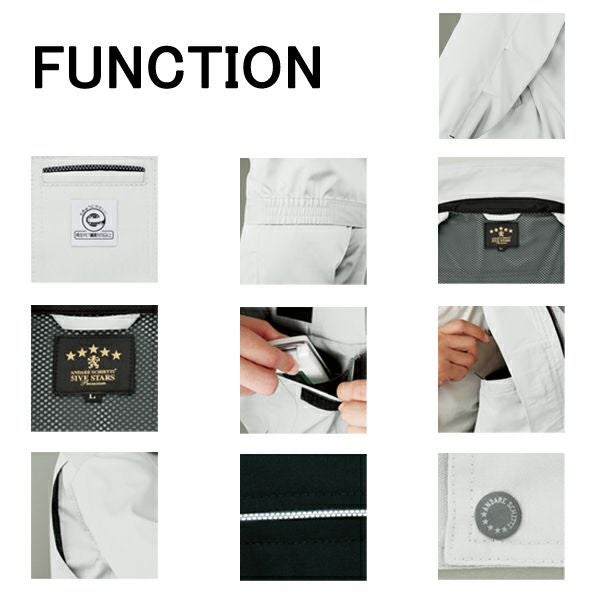 | 特徴 | 1、JIS帯電防止規格合格 2、帯電防止素材使用 3、エコマーク認定 4、抗菌防臭 5、防汚加工 6、衿吊りループ&デオドラントネーム 7、再帰反射テープ 8、樹脂ボタン 9、樹脂 10、携帯電話収納ポケット 11、クールマックス(衿台) 12、デオドラント加工ネーム 13、反射パイピング 14、アクションプリーツ(メッシュ) 15、再生PET繊維65%使用 16、内ポケット 17、オリジナルドットボタン 18、後ろ脇ゴム 19、肘タック |