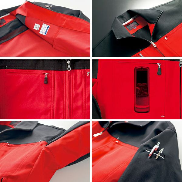 1、背当メッシュ 2、脇がつっぱらない!リラックスカット 3、右胸内携帯ポケット 4、左袖ペン差し 5、エコマーク・氏名片布 6、制電素材 7、リサイクル素材 8、裏綿素材 9、ウェアマジック 裏綿 |