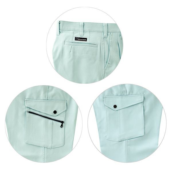 伸びる素材と背当メッシュが作業性をアップ、粋な配色で個性が光ります。