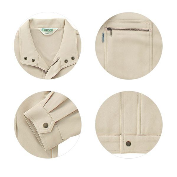 1、左袖多機能ポケット 2、制電素材 3、2WAYストレッチ素材 4、裏綿素材 |