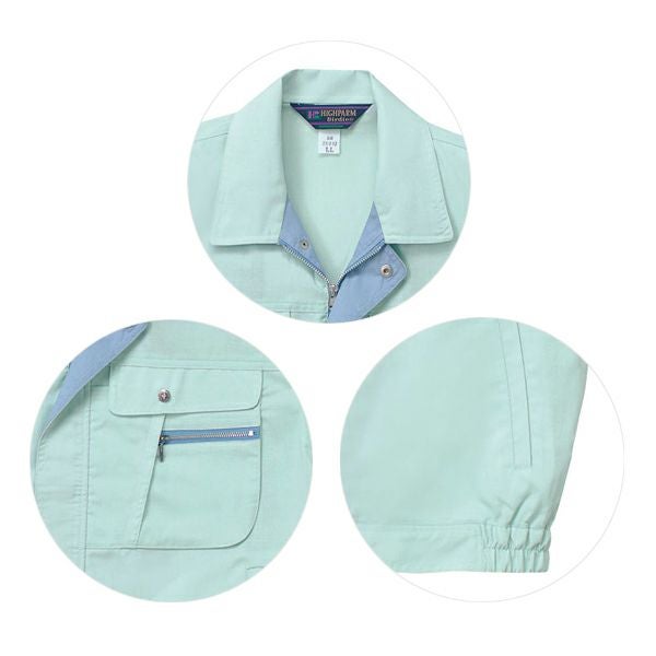 1、前立配色 2、左胸ペン差し・Wポケット 3、左右胸ポケットマチ付き 4、左袖ペン差し 5、防縮・防シワソフト加工 6、ストレッチ素材 7、抗菌防臭加工 8、液体アンモニア加工 |