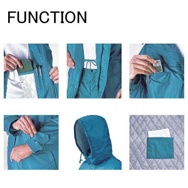 | 特徴 | 1、樹脂ファスナー 2、樹脂ボタン 3、撥水加工 4、軽量防寒 5、携帯電話収納ポケット 6、便利な内ポケット 7、腰を冷えから守るカイロポケット 8、フード取り外し可能 9、ウエストアジャスター 10、風の侵入を防ぐ二重仕立て |