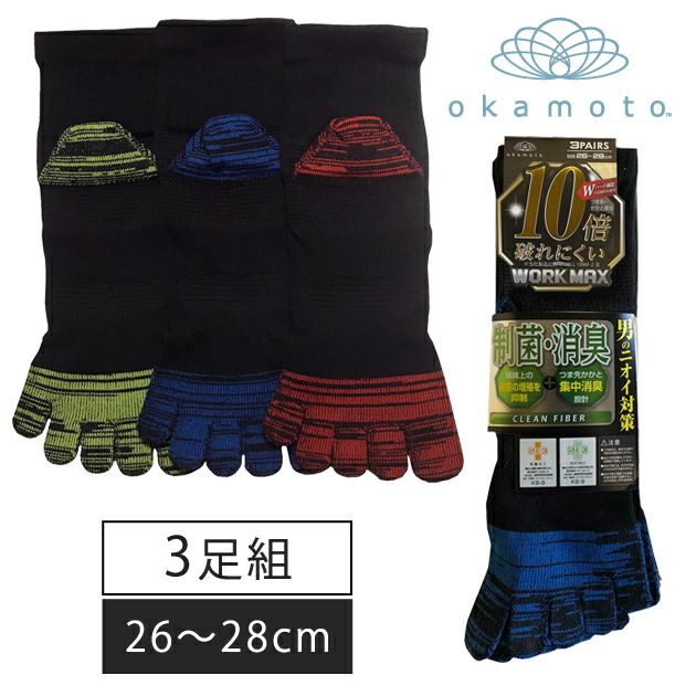 okamoto(オカモト 靴下 WORKMAX 制菌メッシュレギュラー丈 5本指アソート3足組 989-411