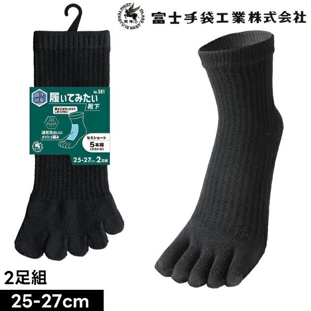 汗を吸収するパイル編みと通気性の良いメッシュ編み採用 富士手袋工業 581 靴下 履いてみたい靴下 5本指 2足組
