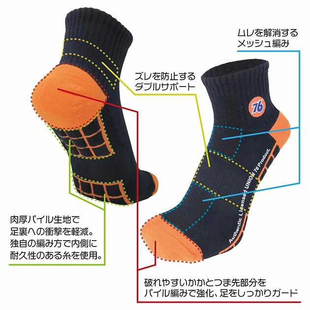 UNION 76 靴下 ハイパークッション先丸 3足組 FT-76100