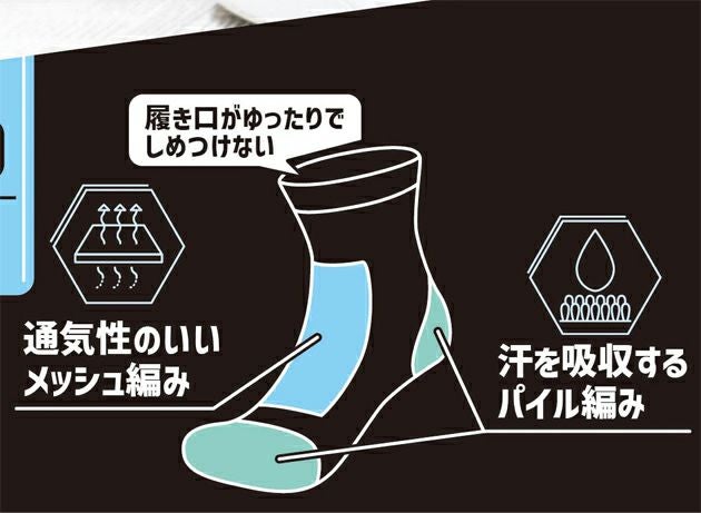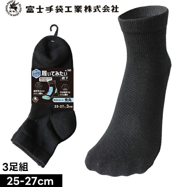 汗を吸収するパイル編みと通気性の良いメッシュ編み採用 富士手袋工業 580 靴下 履いてみたい靴下 先丸 3足組