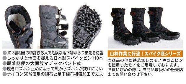 使いやすいマジックテープ式のスパイク安全地下足袋 荘快堂 安全靴 鉄芯入安全スパイクシューズ 山彦 / I-78