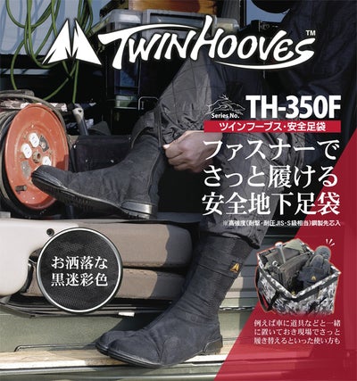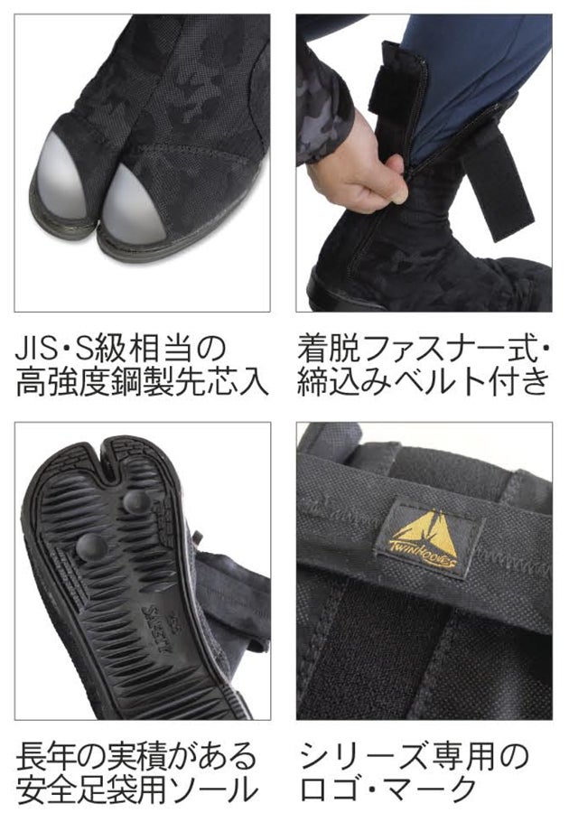 ファスナーでさっと履ける安全地下足袋。オシャレな黒迷彩色 荘快堂 TH-350F 安全地下足袋 ツインフーブス安全足袋