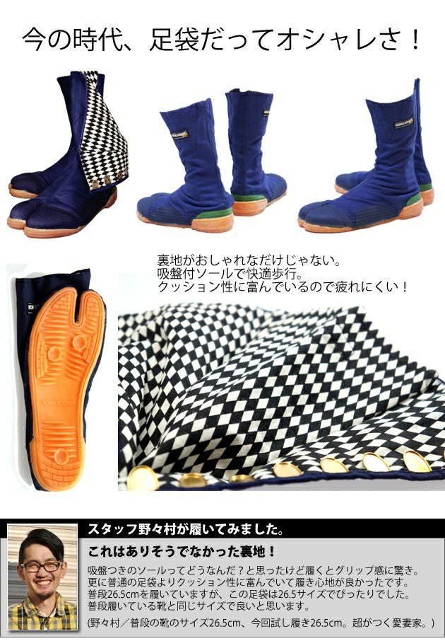| 商品名 | 【ユニワールド】【足袋】鉄先芯入 縫付地下足袋 大ハゼ8枚 紺 No.1000 |