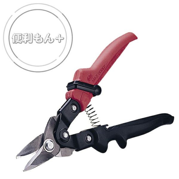 直線切込みに最適。エルゴノミックグリップ。 MALCO 板金道具 MAX2000 金切バサミ M2005 直線切込 赤 V526201