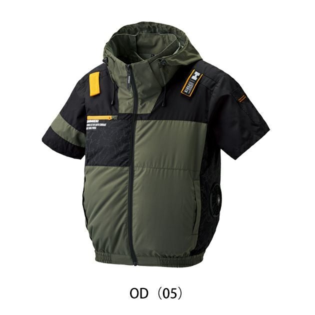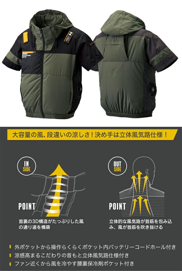 | 【特徴】 | UVカット&遮熱効果の裏チタン生地! リフレクトプリントが燦然と光るHUMMERのフルハーネス対応半袖フーディサイドファン空調風神服。 UVカット&遮熱の裏チタン加工生地を使用。 前からも後ろからも大容量の風が吹き上げる高襟&立体風気路仕様。 ◆背もたれに干渉しにくいサイドファン仕様 ファンの位置が通常よりも脇に配置され重機や車の運転時に邪魔にならない ◆立体風気路搭載 首裏の3D構造が風の通り道を確保し立体的な風気路が首筋を包み込み風が首筋を吹き抜ける ◆裏チタン加工 遮熱効果MAX-11.5°C ・両脇ポケット ・右胸ポケット ・反射プリント ・フックハンガー取付ベルト ・立体風気路 ・バッテリーケーブルコードホール ・保冷剤ポケット ・左袖ペン差し ・サイドファン ・飾り引き手 ・背中フルハーネスランヤード取付口 |