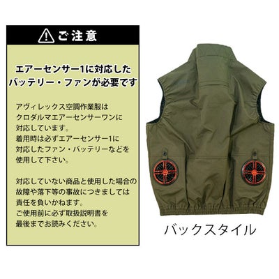 | 【ご注意】 | このウェアはクロダルマエアーセンサーワンのファン・バッテリーに対応しています。 別途ファン・バッテリーをご購入ください。 必ず対応するファンバッテリーを組み合わせてご使用ください。 ご使用の際は取扱説明書をお読みいただき正しくご使用ください。 |