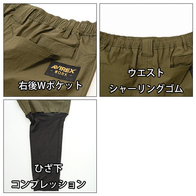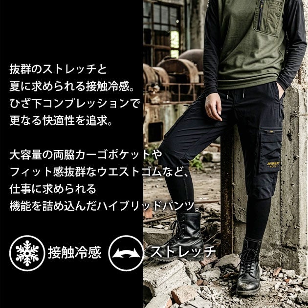 | 【特徴】 | ひざ下がコンプレッション! アヴィレックスからハイブリッドカーゴパンツ登場! シュッとした見た目のひざ下コンプレッションがかっこいい! 接触冷感やストレッチで快適な着心地を実現! ◆接触冷感 ◆タテヨコストレッチ ◆ウエストシャーリング+調整紐 ◆両脇マルチポケット |