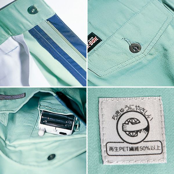 | 特徴 | : | 1、携帯電話収納ポケット(右) 2、前立て配色 3、ピスフラップ(ロッドボタン止め) ●エコマーク認定番号10103002 |