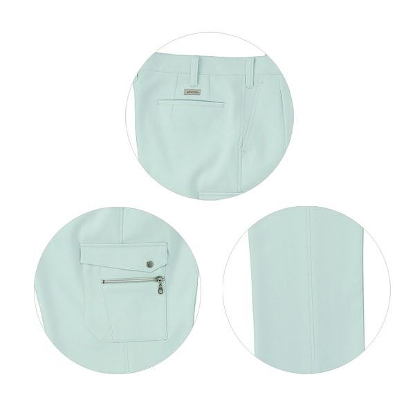 1、制電素材 2、ストレッチ素材 3、リサイクル素材 4、裏綿素材 5、防汚加工 6、エコクリーン裏綿 7、エコマーク 再生PET繊維50%以上 |
