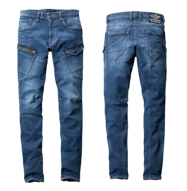 | 特徴 | ◆身体の動きとシンクロするクレイジーストレッチ素材(伸長率27%) ◆強度と耐久性に優れたコーデュラデニム素材 ◆製品洗い・ブラスト加工を施したヴィンテージ加工 ◆男女ユニセックスシリーズ ◆ジャケット ・レベルブック収納ポケット(右:深さ21cm) ・袖ペンポケット(左) ・胸ペンさし(左) ・内ポケット(左) ・ダブルジップ仕様 ◆カーゴパンツ ・両脇ツインループ ・コインポケット(右) |