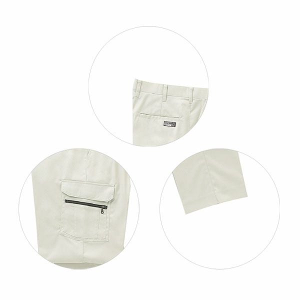 1、再生PET繊維50%以上 2、グリーン購入法対応商品 3、男女兼用 4、トリカット 5、帯電防止素材 6、ストレッチ 7、ファスナー/フロント:金属 ポケット:金属 8、ボタン/プラスチック 9、棒シック 10、右カーゴファスナー付Wポケット |