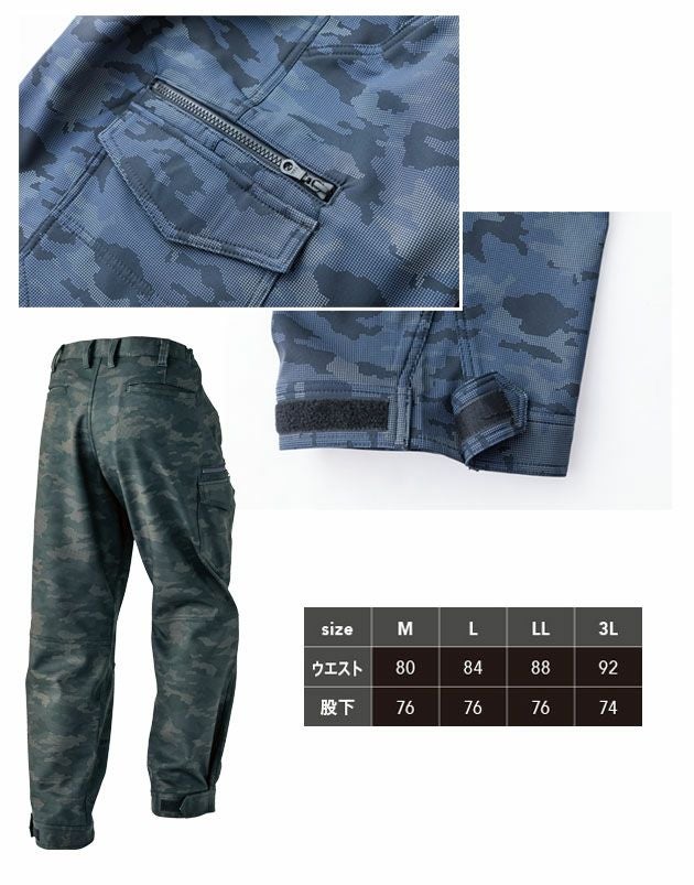 M~3L 中国産業 作業着 秋冬作業服 ドット迷彩ストレッチボンディングカーゴパンツ 9485