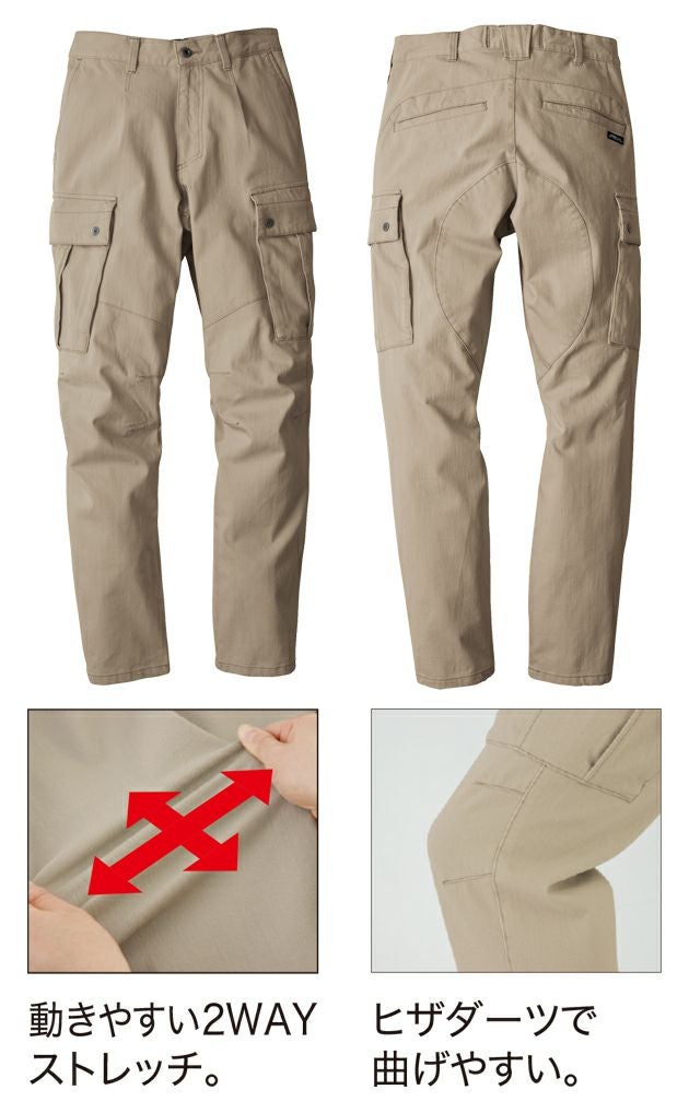 | 【特徴】 | 2WAYストレッチスラブツイル現場服 現場服シリーズに待望のタテヨコ2WAYストレッチ素材が新登場。 スラブ糸使いでカジュアル感のある素材と肉厚で丈夫な生地感はハードな現場に最適です。 さらにマチ付きの大型カーゴポケットは収納力抜群でスムーズな作業をサポートします。 ◆2WAYストレッチで動きやすい ◆大きめ&マチ付きカーゴで収納力抜群 ・ヒザダーツで曲げやすい。 ・両脇フラップ&マチ付きカーゴポケット。 ・前中心は丈夫な3YGファスナー。 ・両脇Dカンループ付き。 |