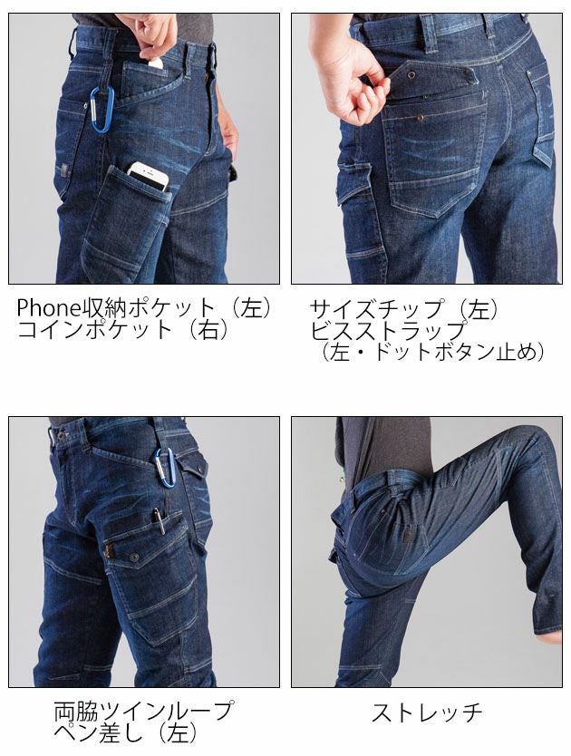 ビンテージ感がかっこいい!スタイリッシュなストレッチデニム! S~5L BURTLE バートル 作業着 秋冬作業服 カーゴパンツ 512