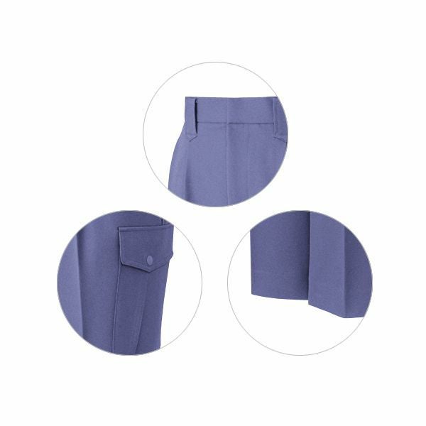 1、帯電防止素材使用 2、オリジナルデザインボタン 3、ストレッチ 4、右孫ポケット・ペン差付カーゴポケット |