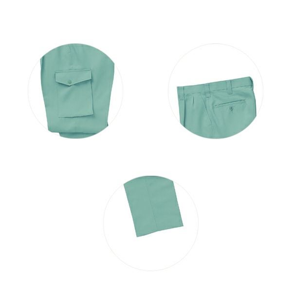 1、右カーゴファスナー付Wポケット 2、ファスナー/フロント:金属、ポケット:コイル(引き手 金属) 3、ボタン/後ポケット:プラスチック、カーゴ:金属 4、帯電防止素材 5、ストレッチ 6、形態安定 7、裏綿 |