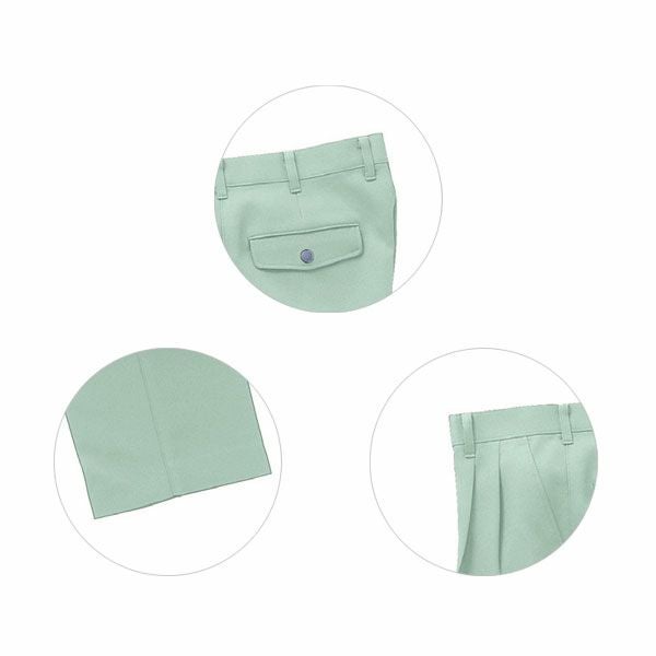 1、帯電防止素材 2、形態安定 3、裏綿 4、ストレッチ 5、棒シック 6、ファスナー/フロント:金属 7、ボタン/プラスチック |