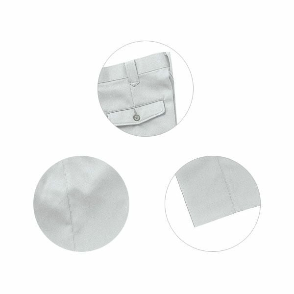 1、帯電防止素材 2、形態安定 3、裏綿 4、ストレッチ 5、トリカット 6、棒シック 7、ファスナー/フロント:金属、ボタン/プラスチック 8、右ポケット内コインポケット |