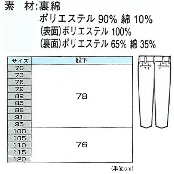 | 特徴 | 1、帯電防止 2、裏綿素材 3、ストレッチ 4、撥水 5、速乾性 6、形態安定 7、雨や汚れた水をはじく撥水加工 |