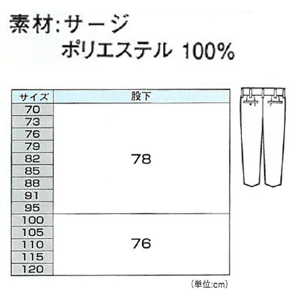 | 適応サイズ表(cm) | サイズ | 70 | 73 | 76 | 79 | 82 | 85 | 88 | 91 | 95 | 100 | 105 | 110 | 115 | 120 | 股下 | 80 |