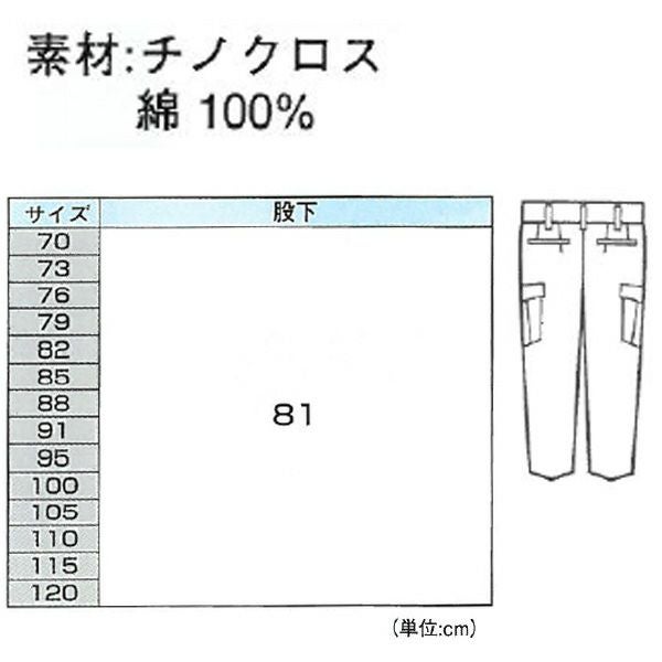 | 適応サイズ表(cm) | サイズ | 70 | 73 | 76 | 79 | 82 | 85 | 88 | 91 | 95 | 100 | 105 | 110 | 115 | 120 | 股下 | 81 |