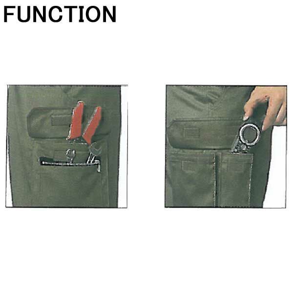 | 特徴 | 1、帯電防止 2、ソフト起毛 3、年間対応 4、膝のアクションダーツで動きスムーズ。 5、左脇ポケットは小物入れになる二重構造。 6、右脇に携帯電話収納ポケット付。 7、ラットポケットは左右でデザインが異なります。 |