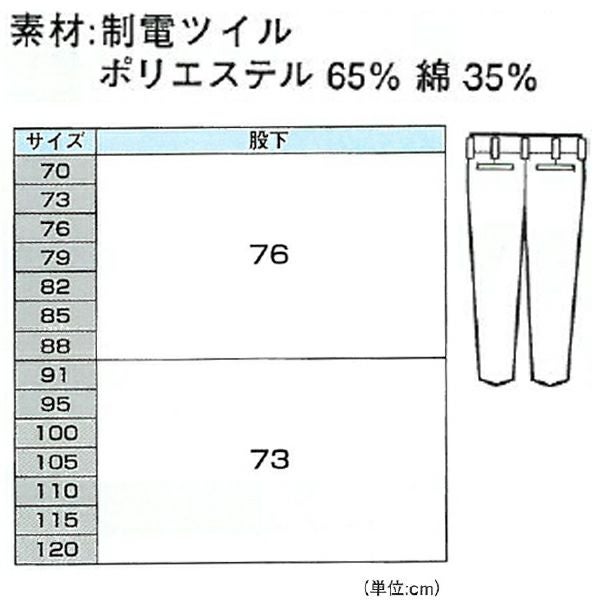 | 素材 | 生地名:制電ツイル ポリエステル65%綿35% |