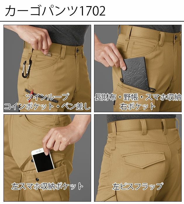 | 【特徴】 | ストレスフリーな着心地と形態回復に優れたお手入れらくちんなバートル作業着! シンプルなデザインながらもバートルのおしゃれさを掛け合わせたユニフォームにもピッタリな上下セット! ◆ストレスフリーな着心地を実現した日本製ストレッチ素材採用 ◆製品制電JIS T8118適合品 ◆ボディーラインに程よくフィットするテーパードシルエット ◆SS・Sサイズはユニセックス対応シルエット ◆1701ジャケット ・袖アームタック ・背アームノーフォーク ・ウエストボタンアジャスター(脇ゴムなし) ・野帳、スマホ収納左ポケット ・左胸ペン差し ・左袖ペンポケット ・左内ポケット ◆1702カーゴパンツ ・右前・左脇ツインループ ・左コインポケット ・右ペン差し ・長財布、野帳、スマホ収納ポケット(右) ・左スマホ収納ポケット ・左後ろピスフラップ |
