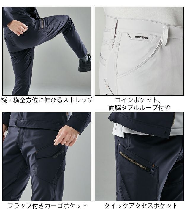 | 特徴 | JIS T8118規格適合の「静電気帯電防止作業服」 スッキリしたシルエットが魅力のカーゴパンツ ◆縦・横全方位に伸びるストレッチ。 TS4DエコダブルクロスはTS DESIGN独自開発の素材。全方位にのびるストレッチ性、帯電防止の機能が備わった新しいワークウェアのスタンダードを作る可能性を秘めた素材となっている。 ◆クイックアクセスポケット カーゴパンツの右側にはクイックアクセスポケットを採用。 物を素早くスムーズに出し入れ出来る仕様となっている。ファスナーポケットもあるので貴重品等の落下も防ぐ。 左側はフラップ付きのポケットを採用。 ◆フラップ付きカーゴポケット カーゴパンツの左側にはフラップ付きのポケットを採用。 貴重品等の落下を防ぐ。オリジナルの反射プリント付き。 ・コインポケット、両脇ダブルループ付き |