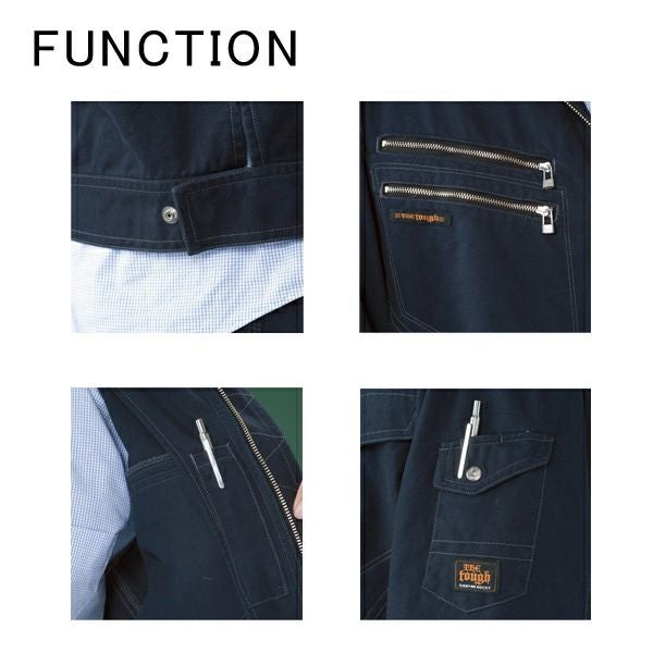 | 特徴 | 1、袖ペンさし 2、内ペンさし(ブルゾン) 3、ファスナー付きダブルポケット 4、裾アジャスター(ブルゾン) |
