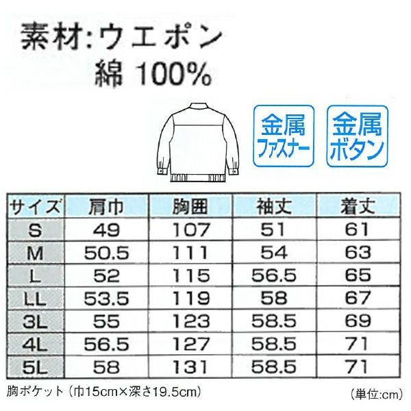 | サイズ | S・M・L・LL・3L・4L・5L 胸ポケット(巾15cm×深さ19.5cm) |