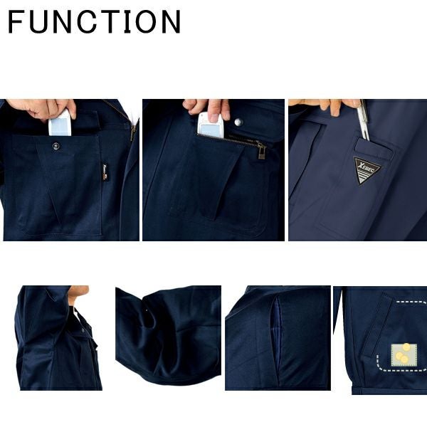 | 特徴 | 1、特殊カッティングで腕の上げ下げがスムーズ。EXカット 2、携帯電話も収納できる右胸ポケット。 3、右胸ポケット、内部コインポケット付。 4、激しい動きにもスムーズに対応する、プリーツロン。 5、袖ぺん差し付。 6、袖肘はアクションタック付で動きがスムーズ。 7、左胸には便利なファスナー付ポケット。 8、プリーツロン 9、スムーズアップ 10、年間対応 11、金属ファスナー 12、金属ボタン |