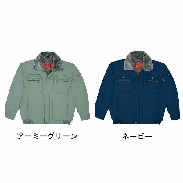 1、胴裏 2、衿ボア仕様(取り外し式) 3、内ポケット 4、ウイングアーム(自重堂オリジナル仕様) 5、袖口内ジャージ仕様 6、防寒 7、ポリエステル65%・綿35% |