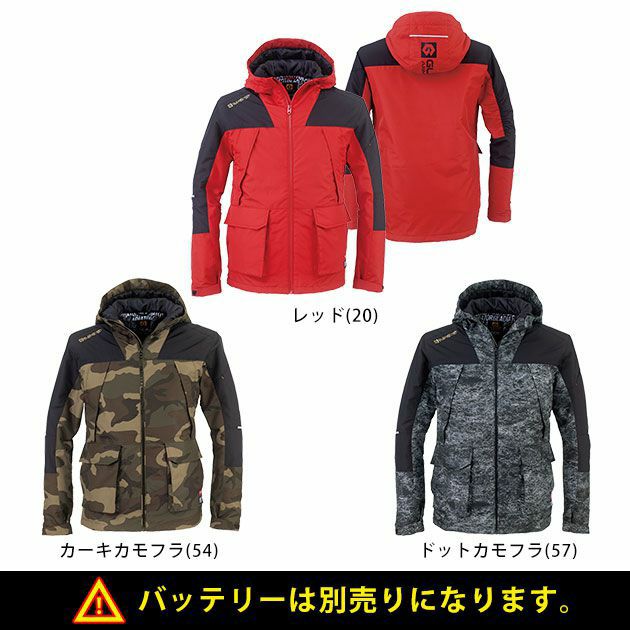| 特徴 | 電熱を纏い調温せよ!! 個性派レッドとワイルドな柄プリントのシリーズ。 アウトドアでもワークでも、シーンを選ばないスタイル。 ◆背裏レタード柄 ◆反射テープ付き ◆フード内側スピンドル ◆袖ムービングギャザー ◆袖口アジャスター ◆ロングテール ◆フィードプリント ◆アクディブポケット ◆左袖マルチポケット ◆脇ダブルポケット ◆USB接続コード ◆使い捨てカイロも入るマルチポケット(腰裏・両胸) <対応バッテリー> G-802 ※電熱機能をご使用の際は、別途バッテリー(別売り)が必要となります。 |