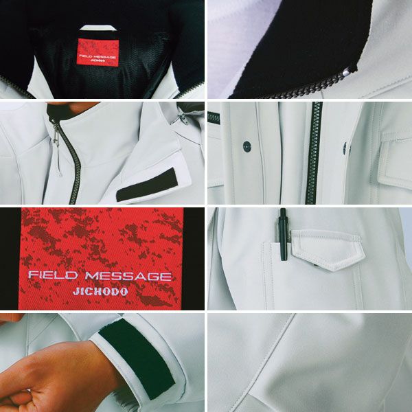 1、背ネーム 2、衿フリース仕様 3、背当てメッシュ 4、二重衿仕様 5、二重前立て 6、携帯電話収納ポケット 7、ワンポイント 8、左袖機能ポケット(ペン差し付) 9、肘タック 10、内ポケット 11、オリジナルデザインボタン(胸) 12、オリジナルデザインボタン 13、袖口アジャスター 14、帯電防止素材使用 15、撥水加工 |