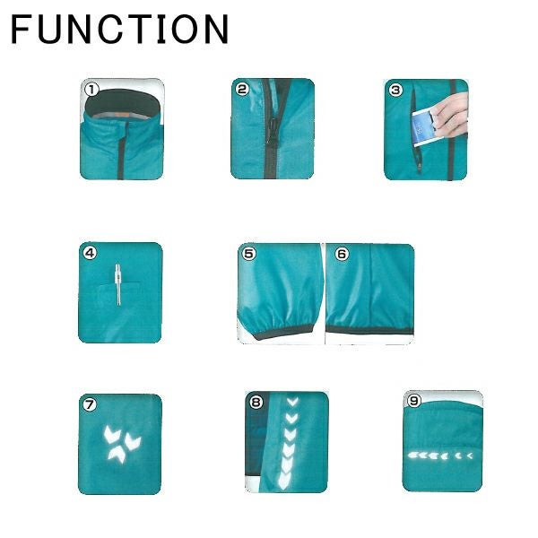 | 特徴 | 1、バンザイカット 2、軽量 3、ホームクリーニング可能 4、男女兼用 5、防風性UPの裏シレー加工。衿フルジップUP。 6、フラットなリバースファスナー仕様。 7、右胸ファスナー付ポケット 8、袖ペン差し 9、裾・袖口に日戸バインダー仕様。 10、右肩反射プリント付 11、左袖口反射プリント付 12、背中反射プリント付 13、樹脂ファスナ |