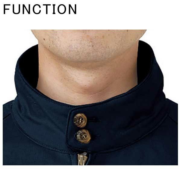 | 特徴 | 1、帯電防止 2、ストレッチ 3、撥水撥油 4、難溶融 5、高耐光加工 6、男女兼用 7、金属ファスナー 8、樹脂ボタン 9、スタンドカラー |