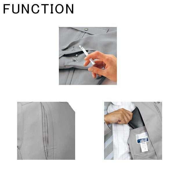 | 特徴 | 1、帯電防止 2、ストレッチ 3、難溶融 4、形態安定 5、撥水撥油 6、速乾性 7、防汚加工 8、激しい動きやすいスムず対応する、プリーツロン。 8、便利な内ポケット付。 9、タバコなどにも溶けにくい難溶融加工。 10、汚れた水や油に強い撥水・撥油加工。 11、樹脂ファスナー 12、金属ボタン |