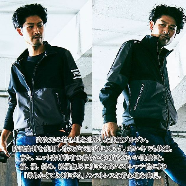 | 特徴 | 「STUD'S(スタッズ)」。 それは「大人の作業着」。 高い防風性能はそのままに高次元の着心地を追求した一着。 従来の防風ストレッチ素材に多い「硬くて伸びにくい」という欠点を解消した新素材を採用! 「軽く、柔らかく、良く伸びる」ノンストレスな着心地を実現しました! ◆両脇ポケット ◆反射パイピング |