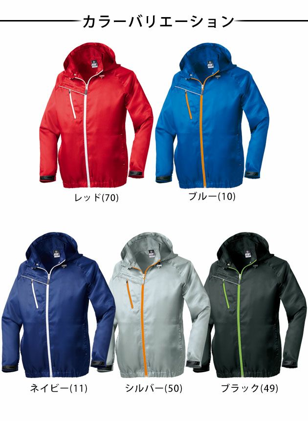 | 特徴 | スポーティでデザイン性の高いウィンドブレーカー。 イベントやアミューズメントなどスタッフユニフォームにピッタリ! ■肩を動かしやすいラグラン袖採用 ■着脱式フード ■衿ファスナーガード付き ■右胸ポケット&反射リフレクター付き ■袖マジックテープ ■光沢があり、シワ寄りが少なく柔らかい着心地の「カルゼ」生地採用 ■ファスナー:樹脂 |
